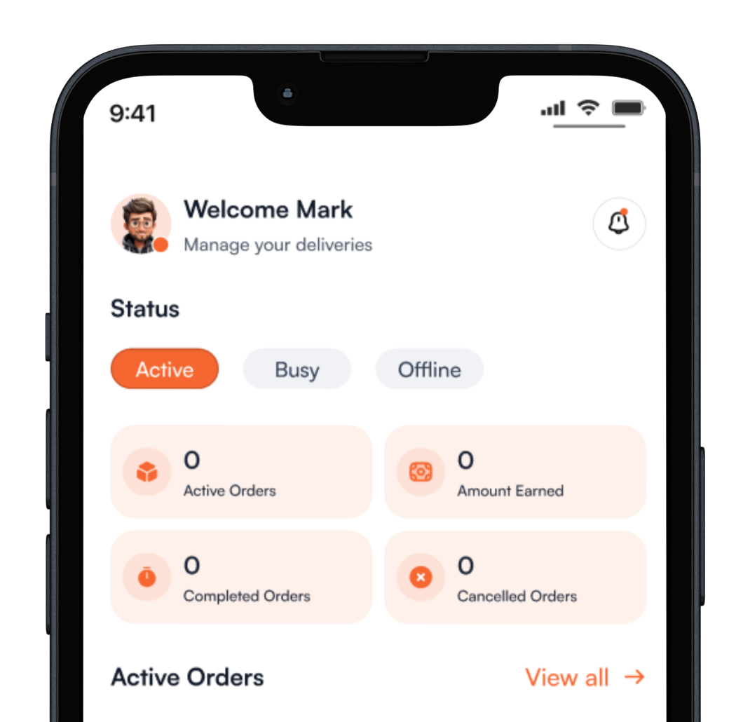 Track completed deliveries, monitor earnings, and submit withdrawal requests securely.